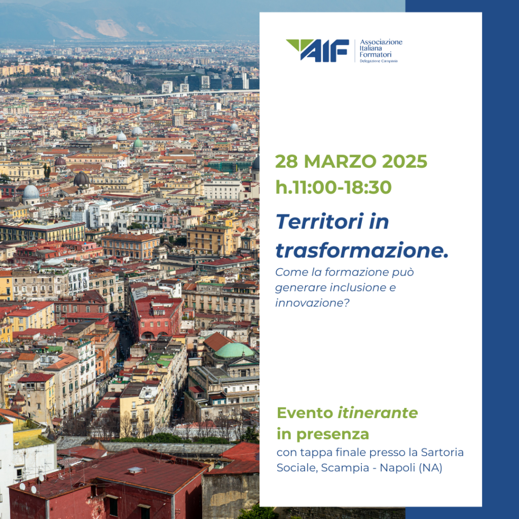 L’evento Territori in trasformazione, promosso dalla Delegazione Campania di AIF in vista del 50° Convegno Nazionale dell’Associazione Italiana Formatori, indaga il ruolo della formazione come strumento di rigenerazione urbana e sviluppo sociale, con un focus su territori complessi come Secondigliano e Scampia.